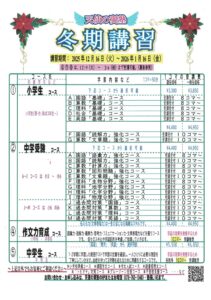 冬期講習では、子どもたちを伸ばすために、さまざまな学びのコースを準備しています。